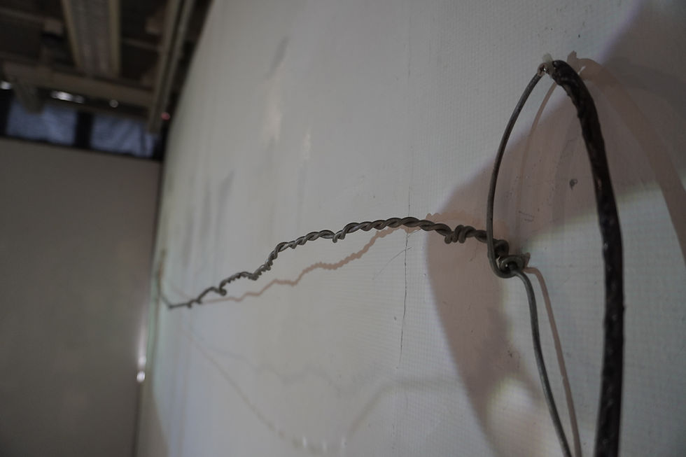 Found industrial wood, black iron flat, iron wire, single-channel video